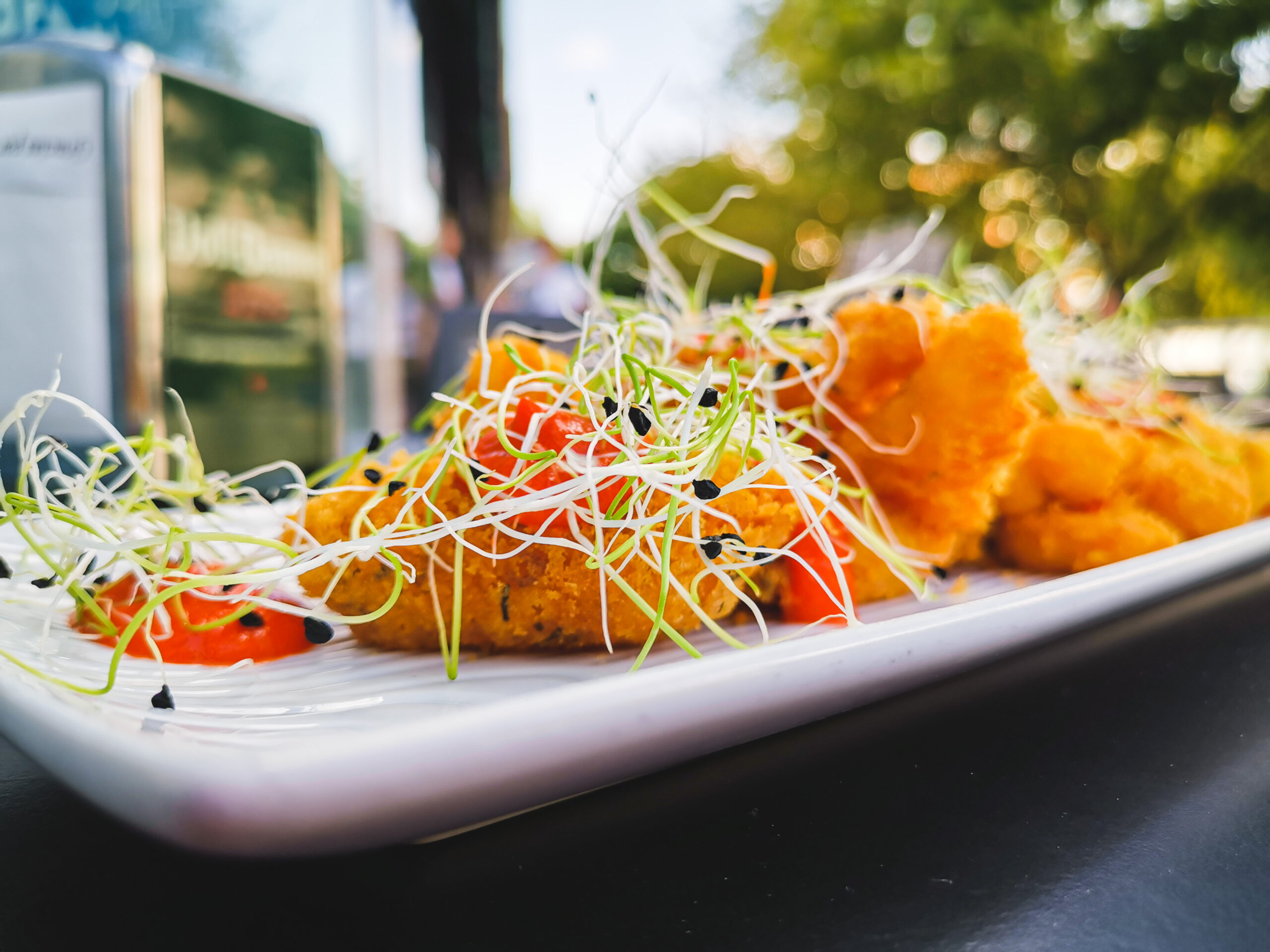 Alcachofas confitadas con sal negra del himalaya y crujiente de jamón